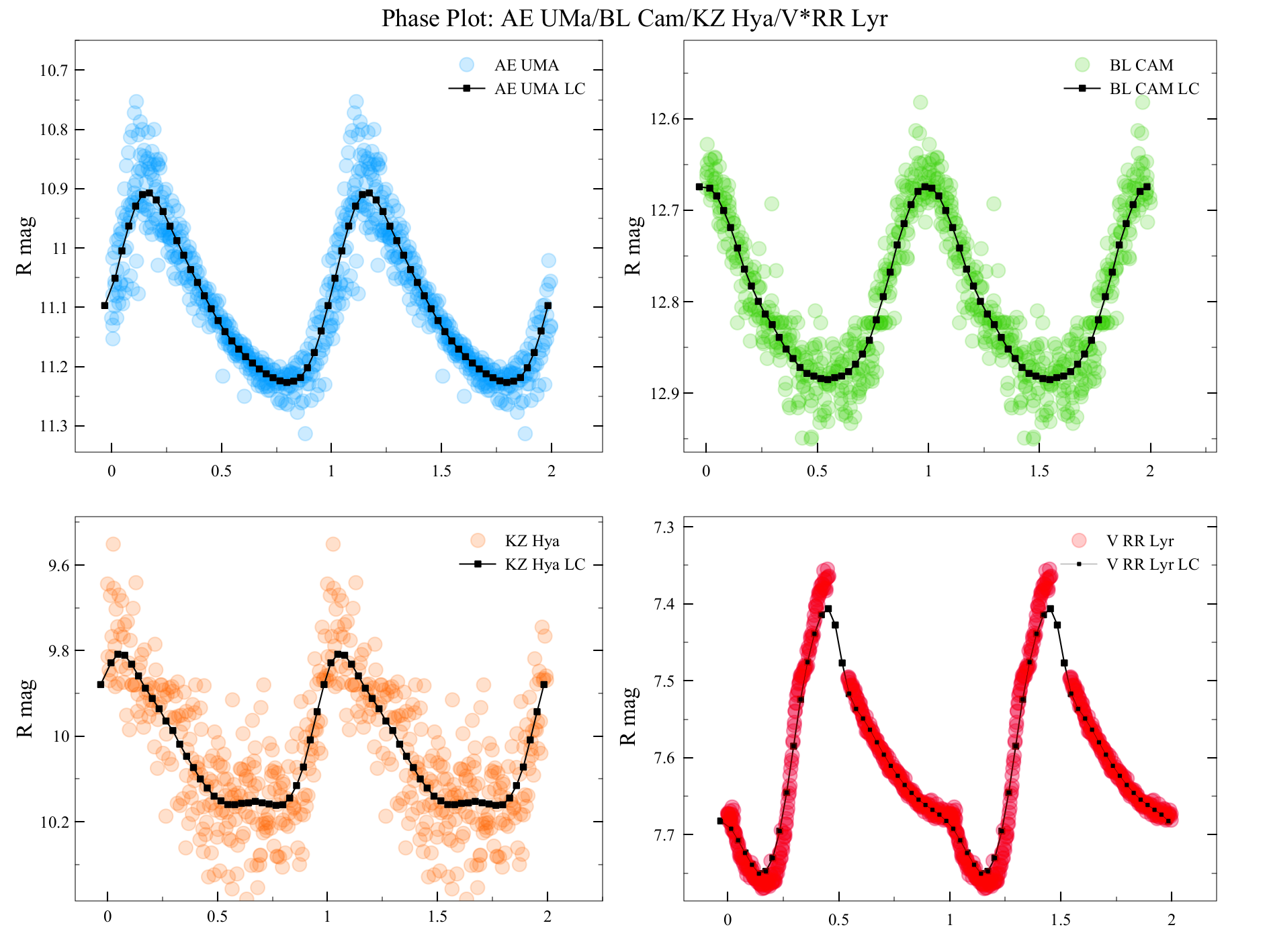 The spectral frequency domain shows the periods of BL Cam and AE UMa 0.039097 days and 0.086037 days respectively.